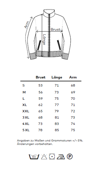 Sweatjacke, Stehkragen, durchgehender Reißverschluss, 2 Leistentaschen mit Reißverschluss auf der Vorderseite, Elasthanbündchen an Ärmeln und Saum, Molton-Brushed, 100 % Baumwolle, 320 g/m², S–5XL.
